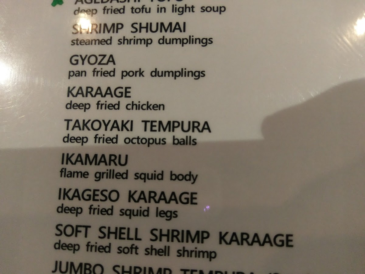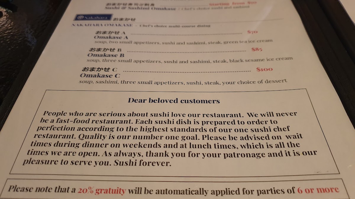 Nakahara Japanese Restaurant Menu